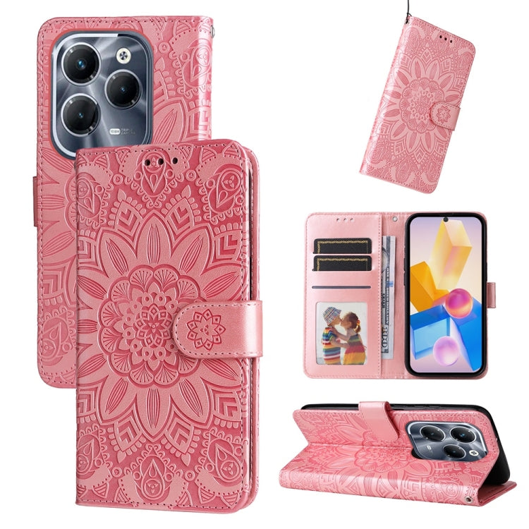 Funda de Cuero con Estampado de Girasoles en Relieve para Infinix Hot 50I/Smart 9 (Rosa)