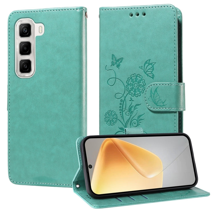 Funda de Cuero para Infinix Hot 50 4G con Diseño de Mariposas y Flores en Relieve (Verde)