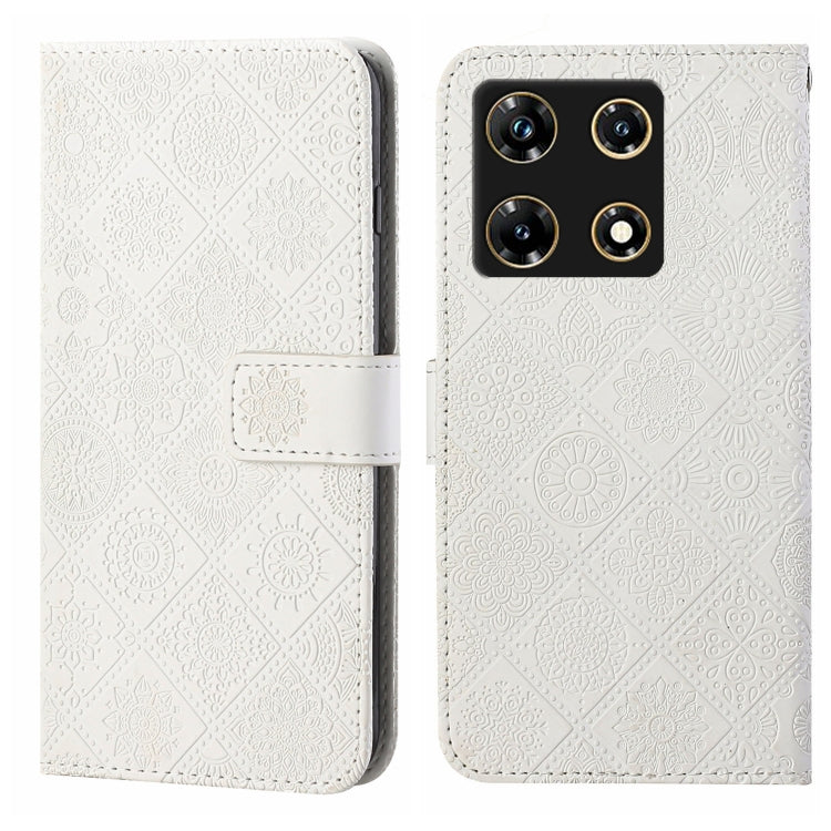 Funda de Cuero con Patrón en Relieve Estilo Étnico para Infinix Zero 40 4G (Blanca)