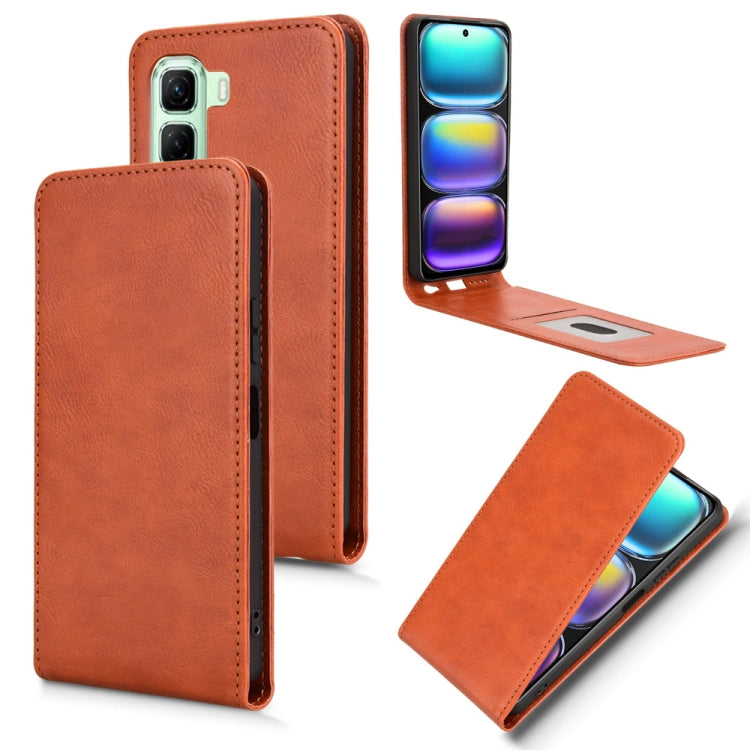 Funda de Cuero con Tapa Vertical Magnética para Infinix Hot 50 5G (Marrón)