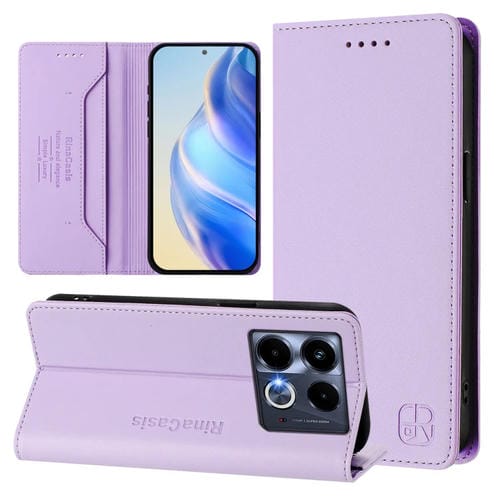 Funda de Cuero con Doble Pliegue y Succión Magnética Rfid para Infinix Note 40 5G Rc01 (Morado Claro)