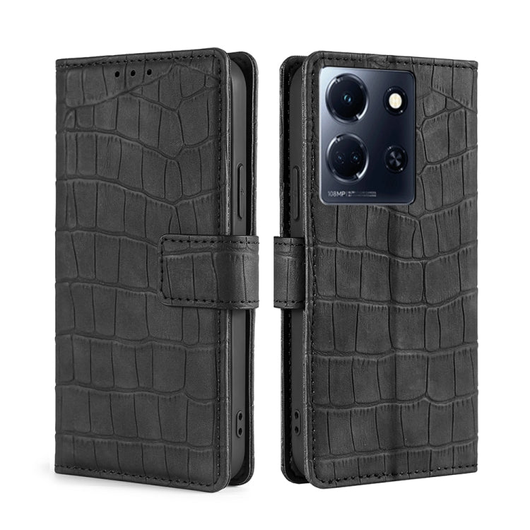 Funda de Cuero para Infinix Note 30 5G con Skin Feel Cocodrilo y Cierre Magnético (Negro)