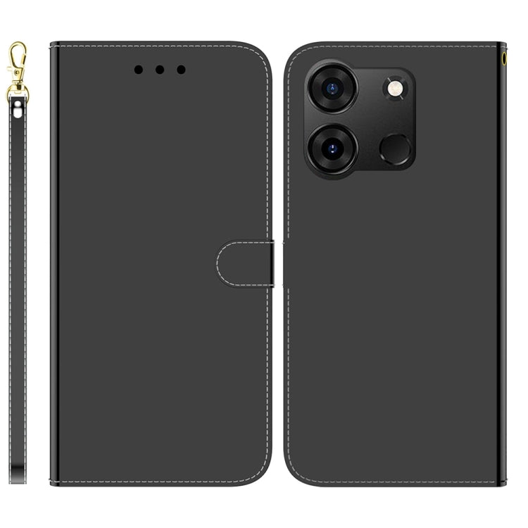Estuche para Teléfono Infinix Smart 7 India y 7 Plus Cuero con Superficie de Espejo (Negro)