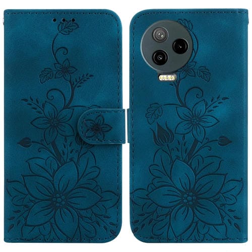 Estuche de Cuero para Infinix Note 12 Pro 4G y Note 12 (2023) con Relieve de Lirio (Azul Oscuro)