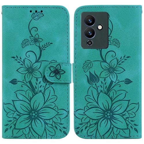 Estuche para Teléfono Infinix Zero 20 / X6821 Cuero con Relieve de Lirio (Verde)