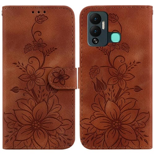 Funda de Cuero para Infinix Smart 7 African X6515 con Relieve de Lirio (Marrón)