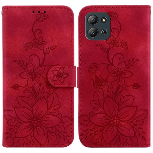 Funda para Teléfono Infinix Hot 11 2022 Cuero con Relieve Lily (Rojo)