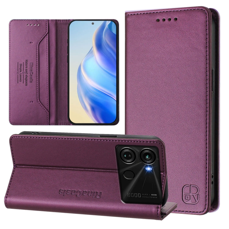 Funda de Cuero Rfid para Teléfono Itel A80 4G Rc01 con Doble Pliegue y Succión Magnética (Morado Claro)