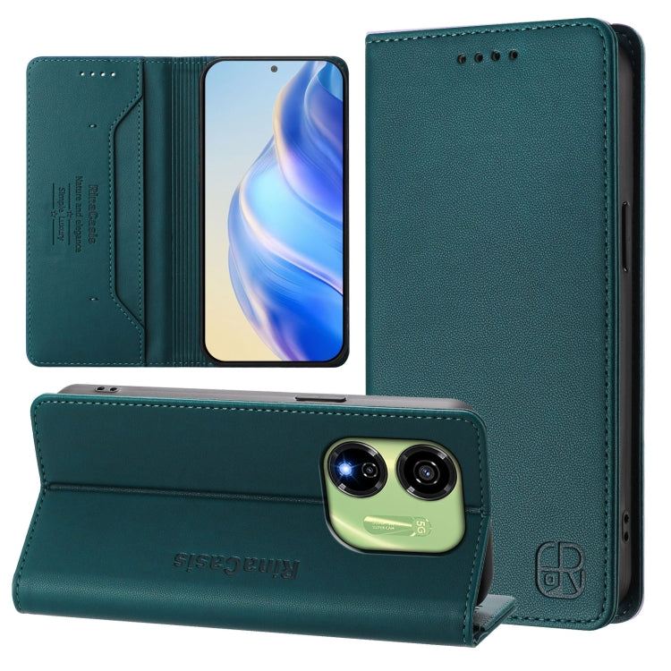 Funda de Cuero Itel P55 5G Rc01 con Doble Pliegue y Succión Magnética Rfid (Verde Oscuro)