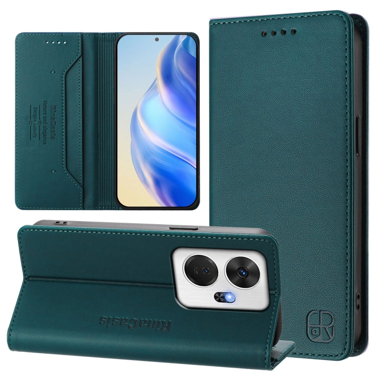 Funda de Cuero Rfid para Teléfono Itel A50C Rc01 con Doble Pliegue y Succión Magnética (Verde Oscuro)