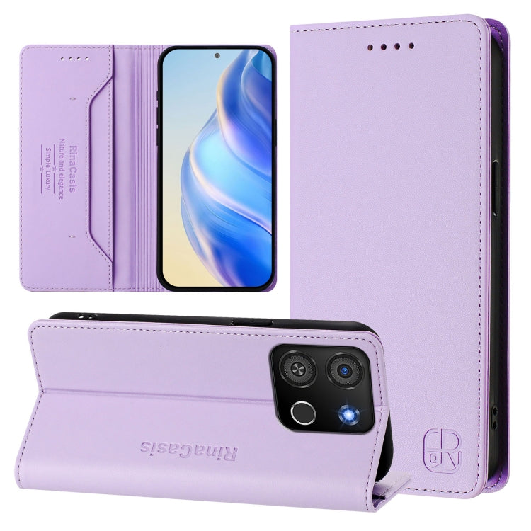 Funda de Cuero Rfid para Teléfono Itel A05S Rc01 con Doble Pliegue y Succión Magnética (Morado Claro)