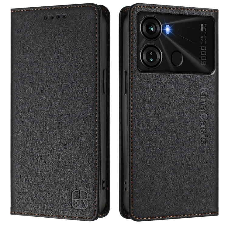 Funda de Cuero Rfid para Teléfono Itel S23+ Rc01 con Doble Pliegue y Succión Magnética (Negra)