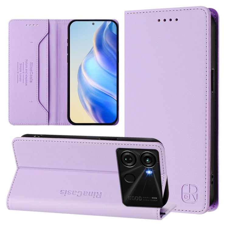 Funda de Cuero Rfid para Teléfono Itel P55+ Rc01 con Doble Pliegue y Succión Magnética (Morado Claro)