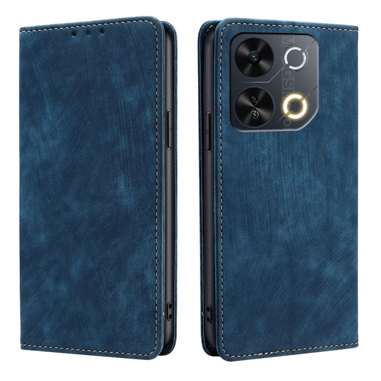 Funda de Cuero Magnética con Cepillo Antirrobo RFID para Teléfono Itel A50C 4G (Azul)