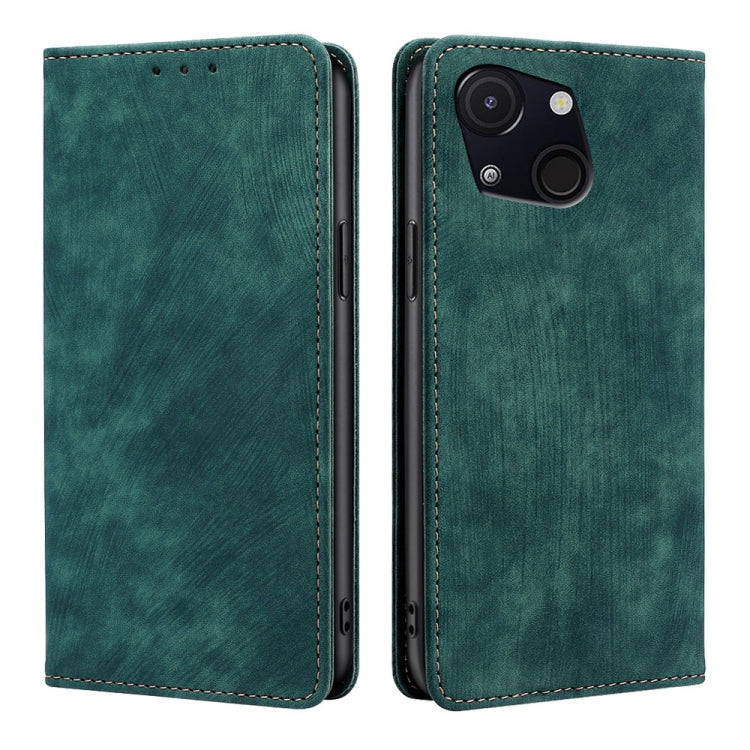Funda de Cuero Rfid para Oukitel C53 Rc01 con Doble Pliegue y Succión Magnética (Verde Oscuro)