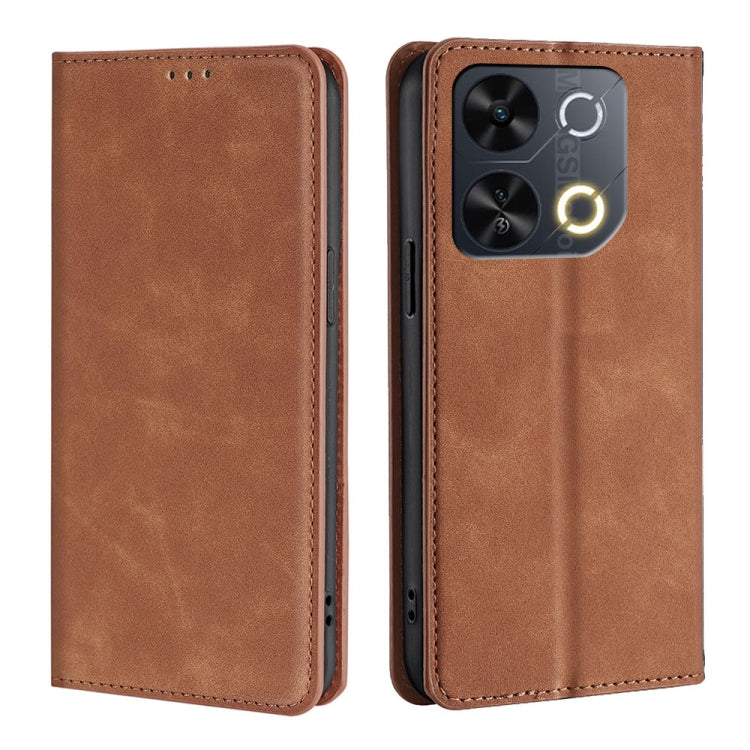 Funda de Piel Magnética para Teléfono Itel A50C 4G (Marrón Claro) con Tacto de Piel