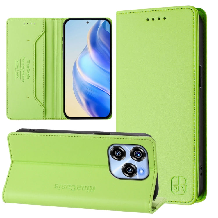 Funda de Cuero RFID con Doble Pliegue y Succión Magnética para Oukitel C53 Rc01 (Verde Menta)