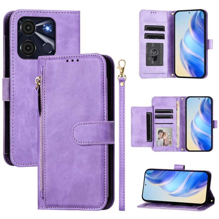 Funda de Cuero con Cremallera y Ranuras para Tarjetas para Itel A60/A60S (Morado)