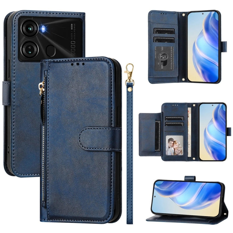 Funda de Cuero con Cremallera y Ranuras para Tarjetas para Itel A60/A60S (Azul)