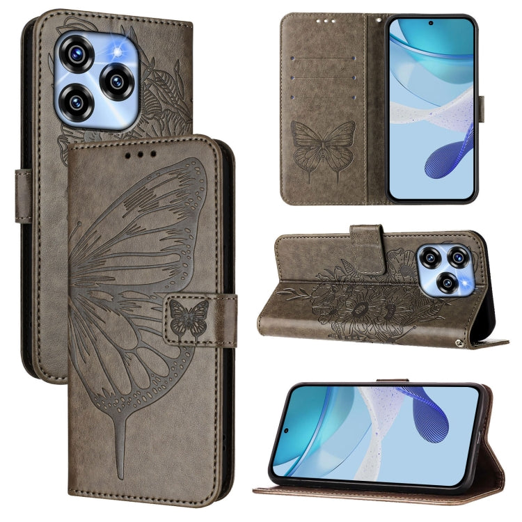 Funda de Cuero para Oukitel C53 con Diseño de Mariposa en Relieve (Gris)