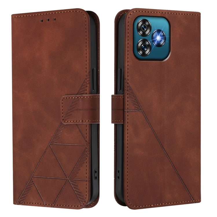 Funda de Cuero con Tapa y Relieve 3D para Oukitel C53 Crossbody (Marrón)