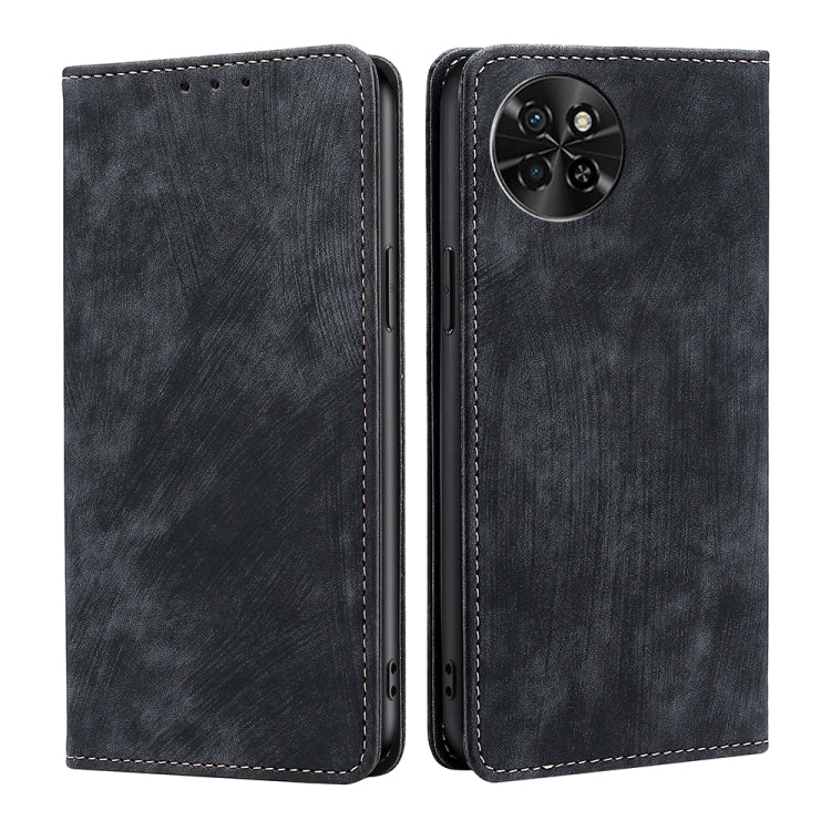 Funda de Cuero Magnética para Itel S23 Plus 4G con Rfid y Cepillo Antirrobo (Negro)