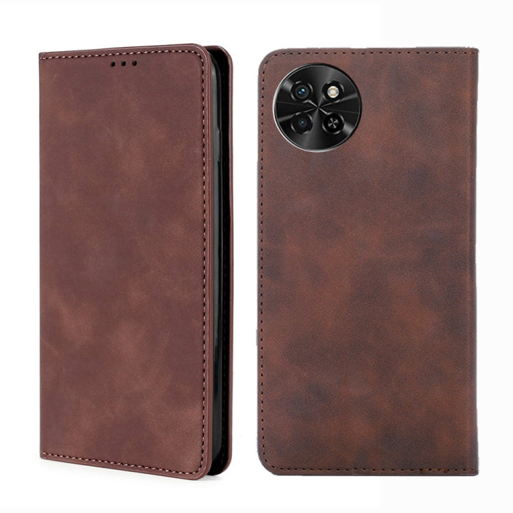 Funda de Cuero Magnética para Itel S23 Plus 4G Skin Feel (Marrón Oscuro)