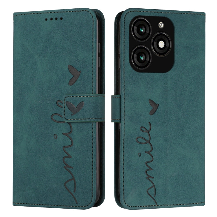 Funda de Cuero Para Itel A70 Skin Feel Heart con Cordón Largo (Verde)