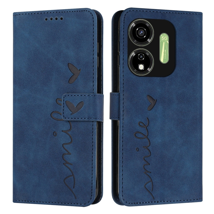 Funda para Itel P55 5G Skin Feel Heart Cuero en Relieve con Cordón Largo (Azul)