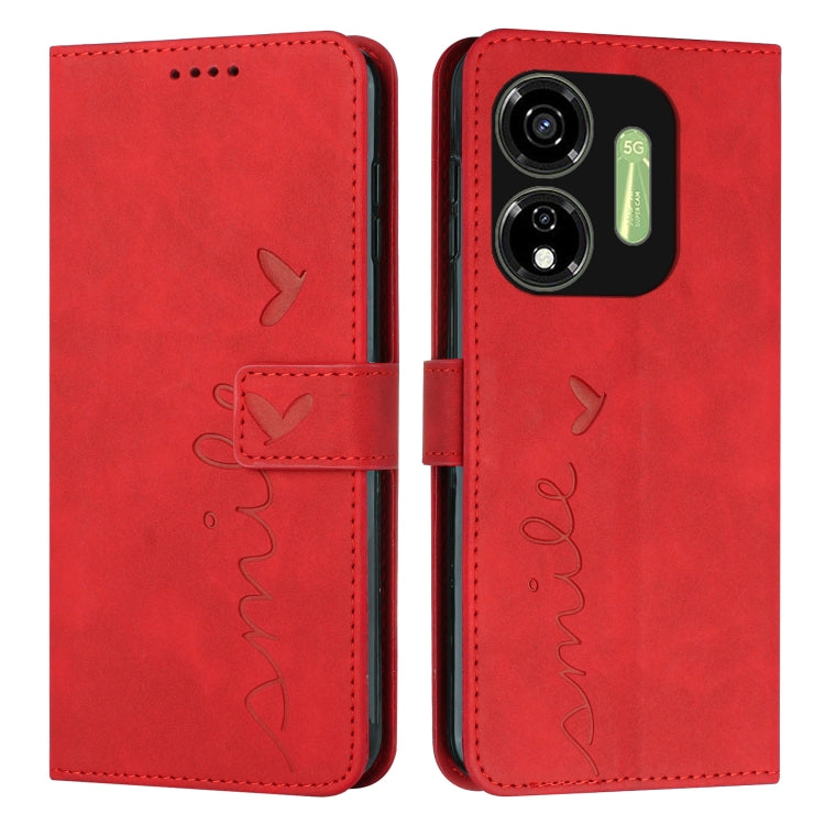 Funda para Itel P55 5G Skin Feel Heart Cuero en Relieve con Cordón Largo (Rojo)