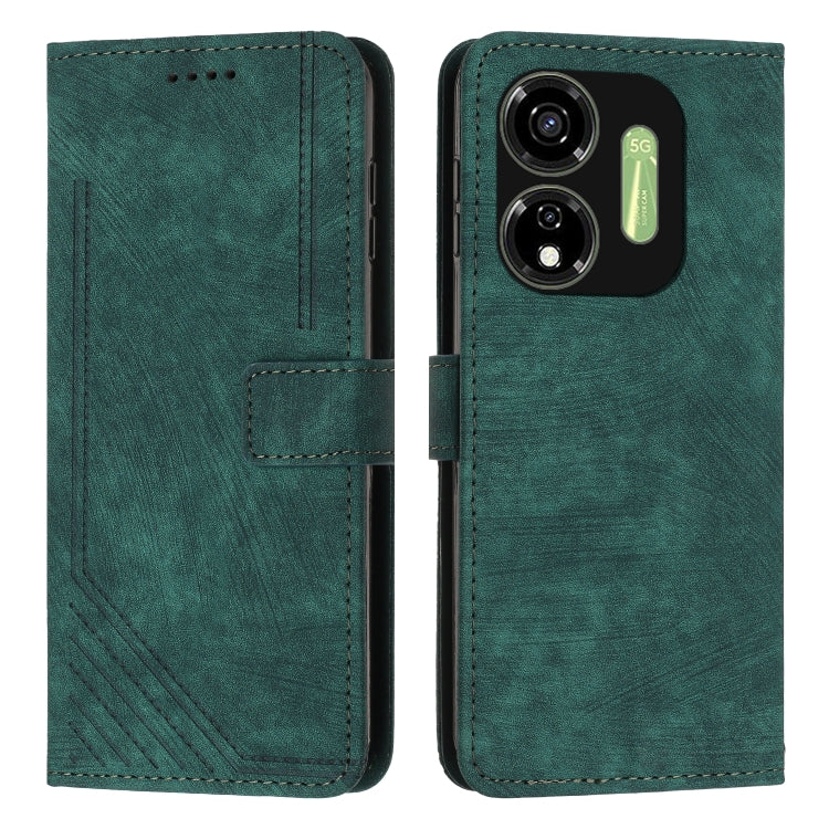 Funda de Cuero para Itel P55 5G Skin Feel con Patrón de Rayas y Cordón (Verde)