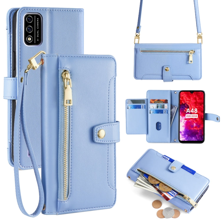Estuche de Cuero para Itel A48 con Billetera, Cremallera y Cuerpo Cruzado (Azul)