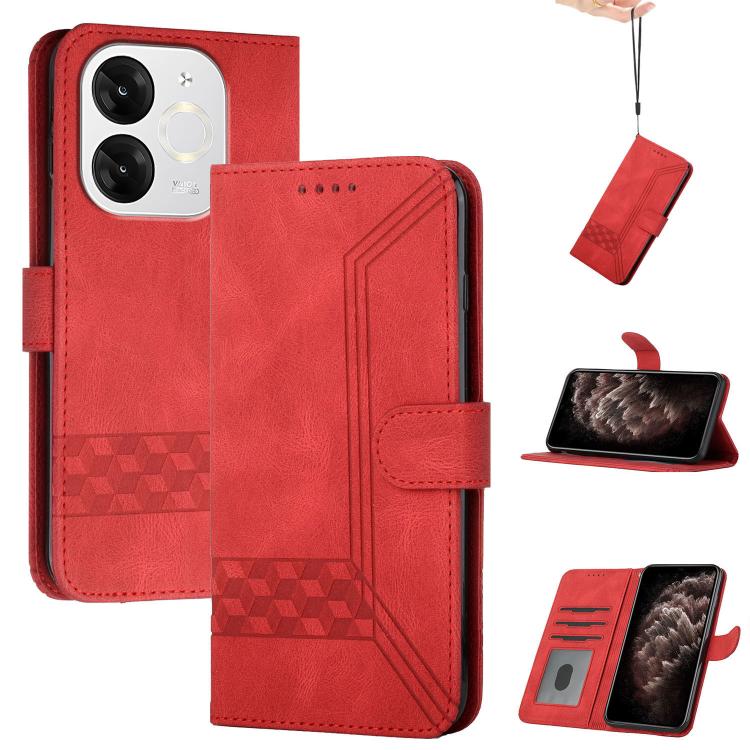 Funda de Cuero con Tapa y Tacto de Piel Cúbica para Itel S25 Ultra (Roja)