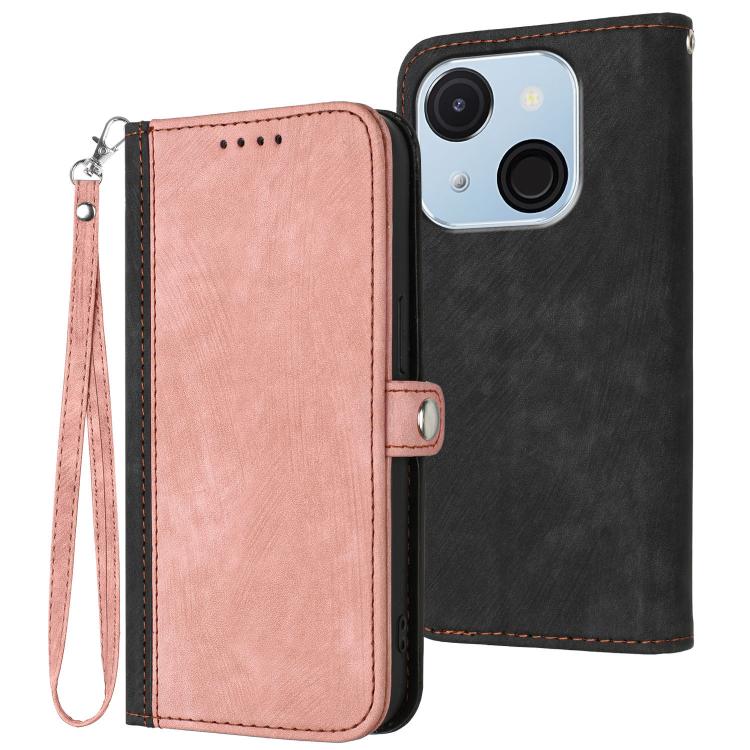Funda de Cuero para Itel A50C con Correa de Mano y Hebilla Lateral Doble Plegable (Rosa)