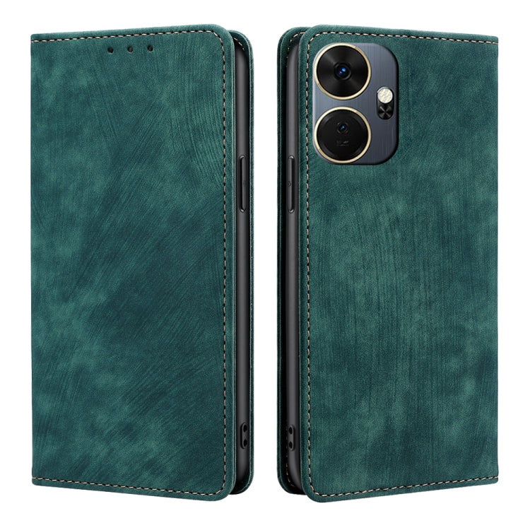 Funda de Cuero Magnética para Itel P55 + 4G con Rfid y Cepillo Antirrobo (Verde)