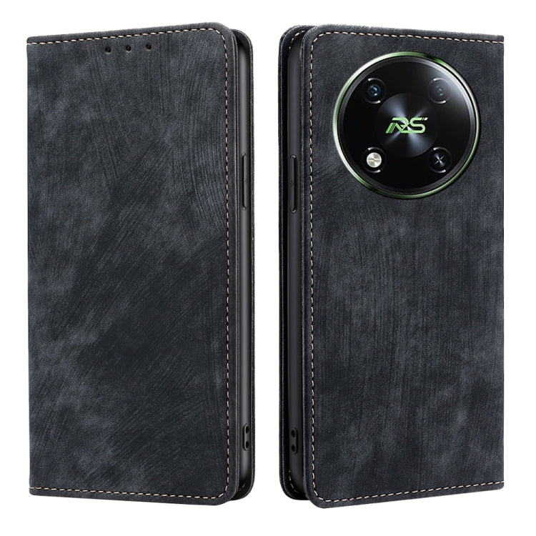 Funda de Cuero Magnética para Itel Rs4 4G con Protección Rfid y Cepillo Antirrobo (Negro)