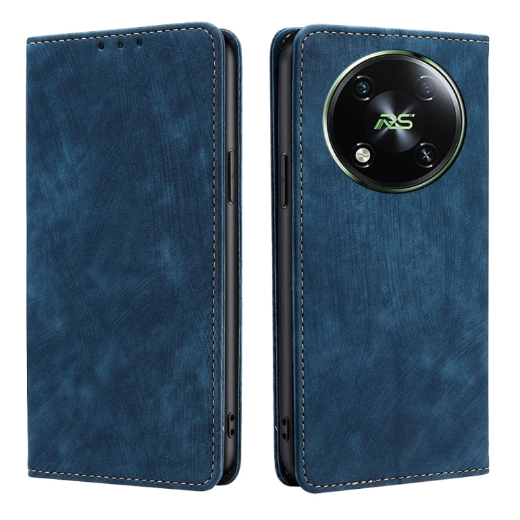 Funda de Cuero Magnética para Itel Rs4 4G con RFID y Cepillo Antirrobo (Azul)