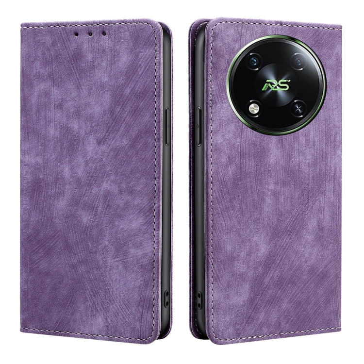 Funda de Cuero Magnética para Itel Rs4 4G con Rfid y Cepillo Antirrobo (Púrpura)