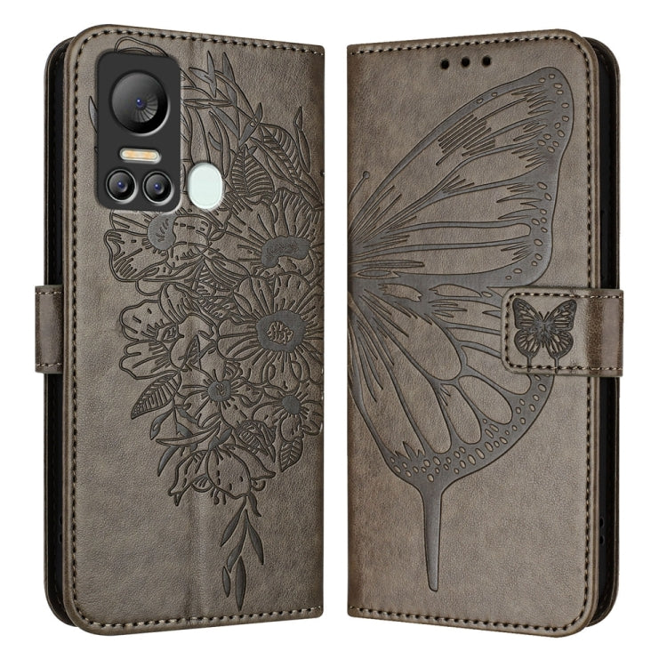 Funda de Cuero para Itel S18 y Vision 5 con Mariposa en Relieve (Gris)