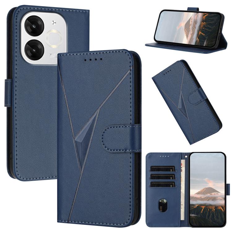 Estuche de Cuero con Hebilla y Diseño de Triángulos para Teléfono Itel A50C (Azul Real)