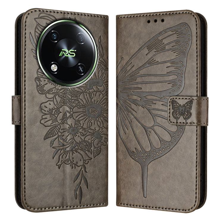 Funda para Teléfono Itel Rs4 S666Ln Cuero con Mariposa en Relieve (Gris)
