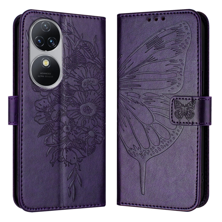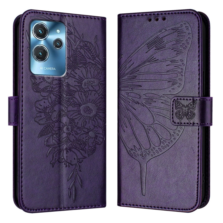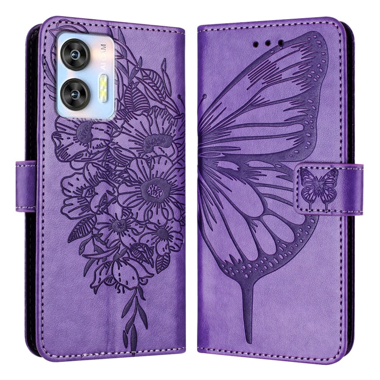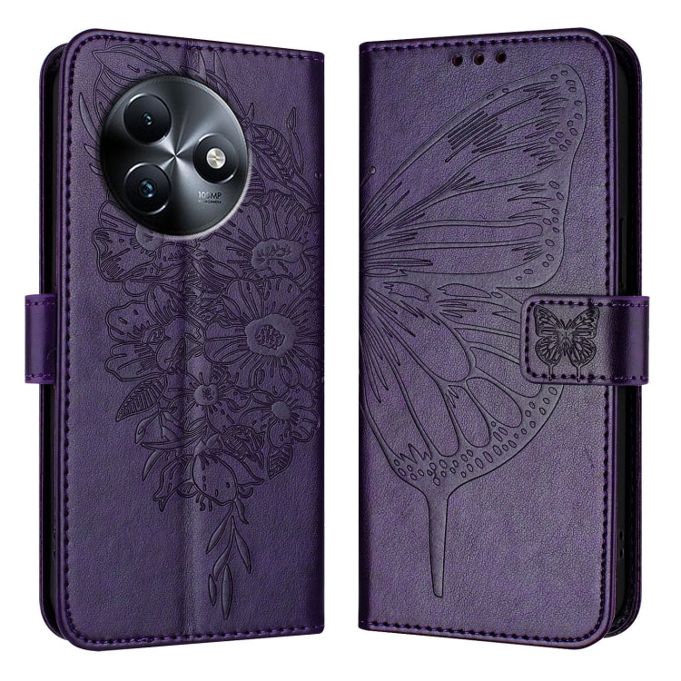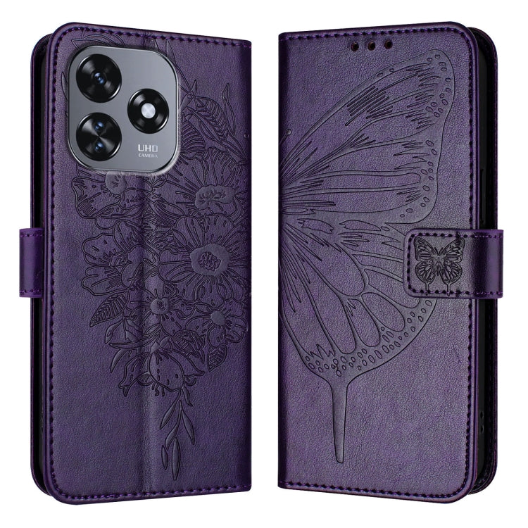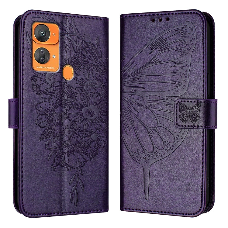 Funda de Cuero para Itel S24 con Mariposa en Relieve (Púrpura Oscuro)