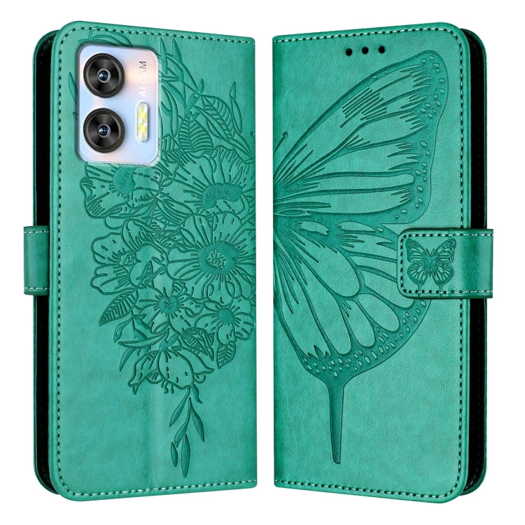 Funda de Cuero para Oukitel C36 / C35 con Mariposa en Relieve (Verde)