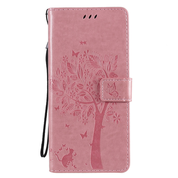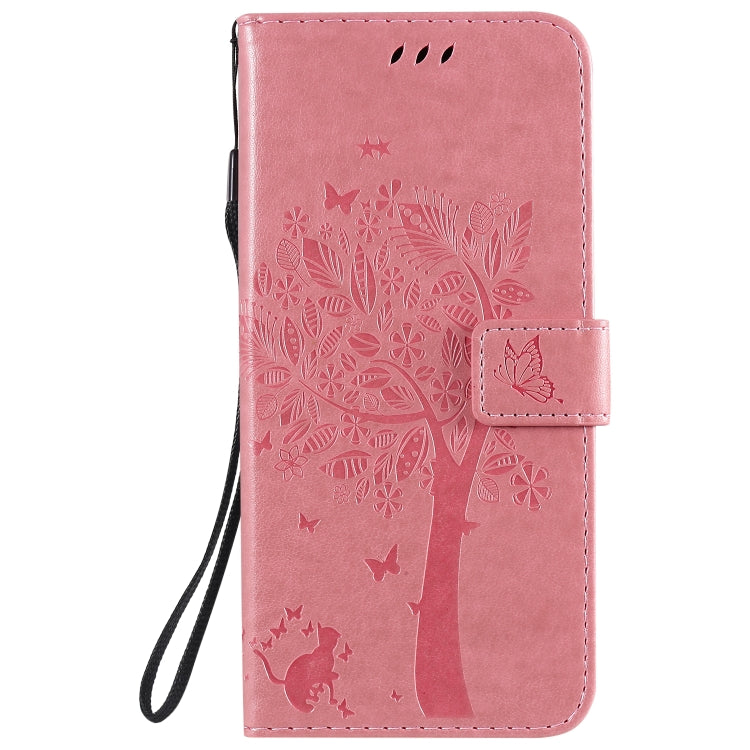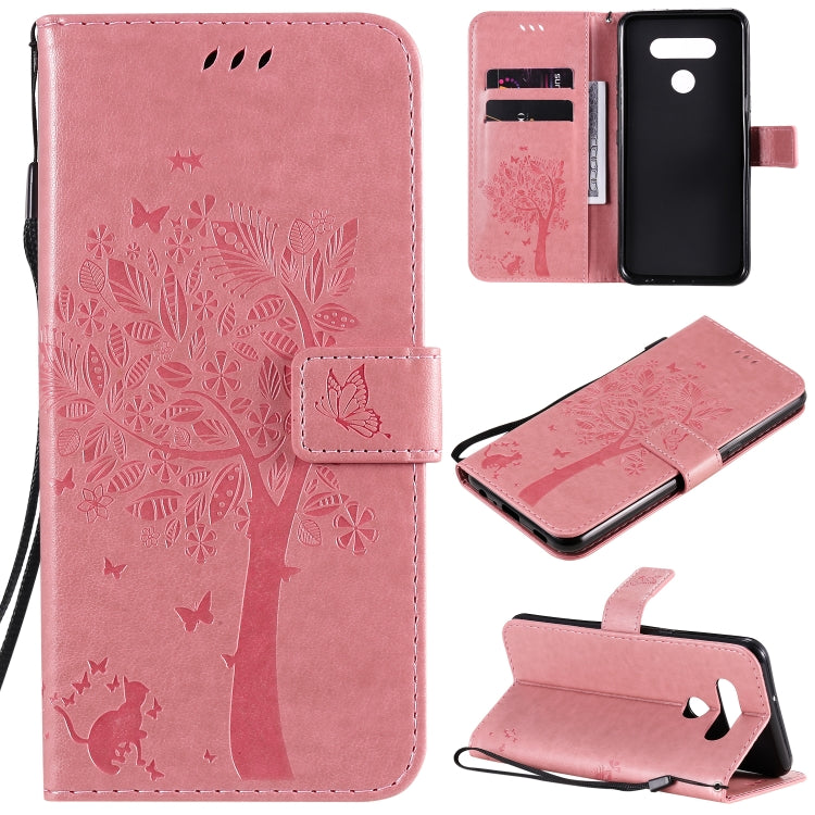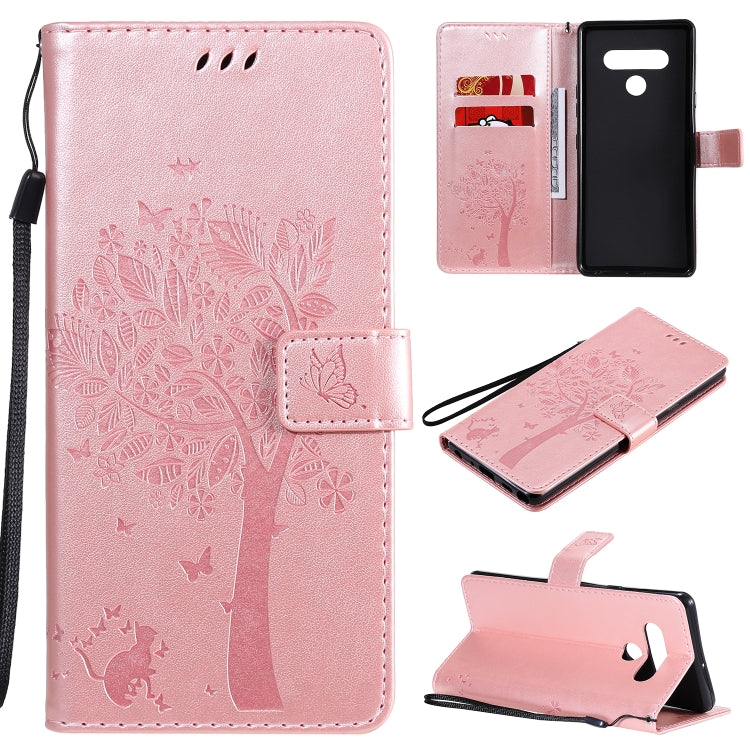 Funda de Cuero para LG Stylo 6 con Tapa Horizontal, Patrón Árbol y Gato, Soporte, Ranuras y Cordón (Rosa)
