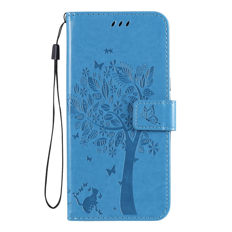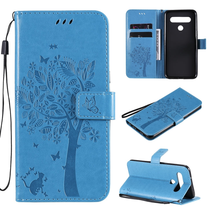 Funda de Cuero para LG K61 Tree & CAT con Tapa Horizontal, Soporte, Ranuras para Tarjetas y Cordón (Azul)
