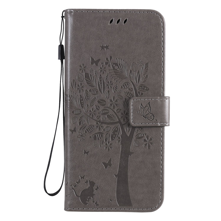 Funda de Cuero para LG K61 Tree & CAT con Tapa Horizontal, Soporte, Ranuras para Tarjetas y Cordón (Gris)