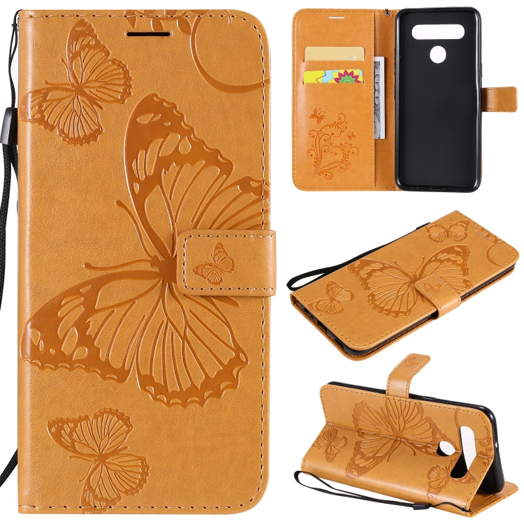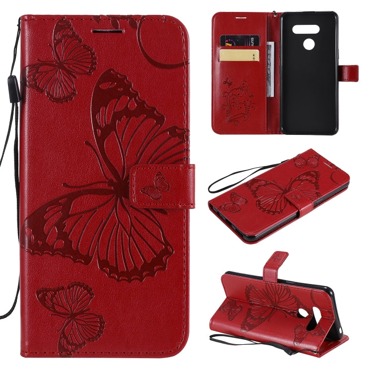 Funda de Cuero para LG K50S 3D Mariposa en Relieve con Soporte, Ranura para Tarjeta y Cordón