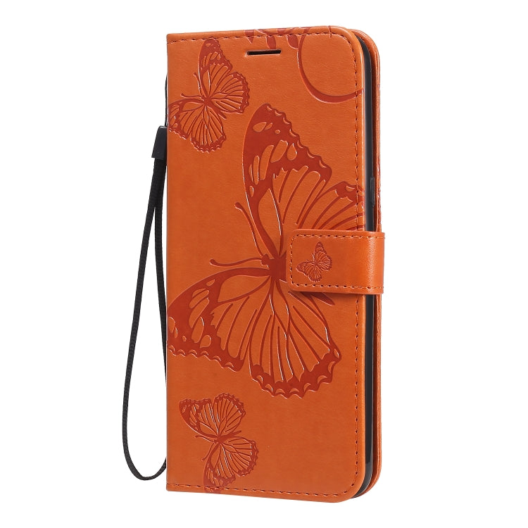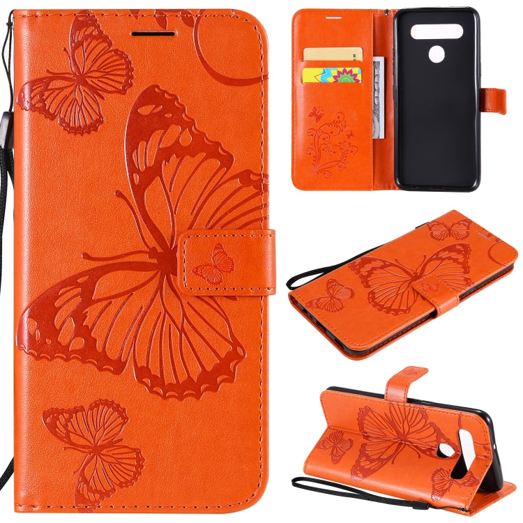 Funda de Cuero LG K61 3D Mariposa con Tapa Horizontal, Soporte, Ranura para Tarjeta y Billetera (Naranja)