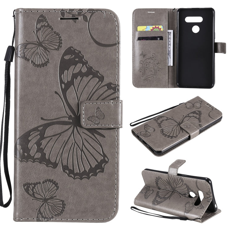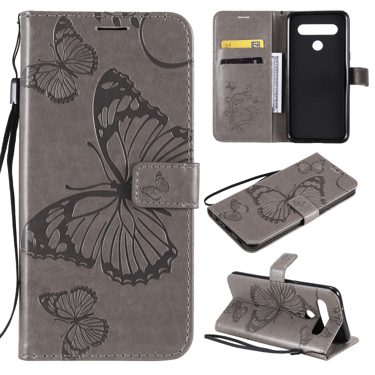 Funda de Cuero para LG K61 3D Mariposa con Tapa Horizontal, Soporte, Ranura para Tarjeta y Cordón (Gris)