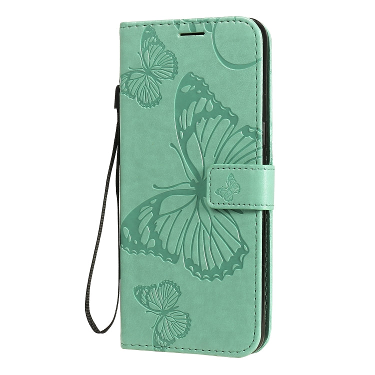 Funda de Cuero LG K61 3D Mariposa con Tapa Horizontal, Soporte, Ranura para Tarjeta y Cordón (Verde)